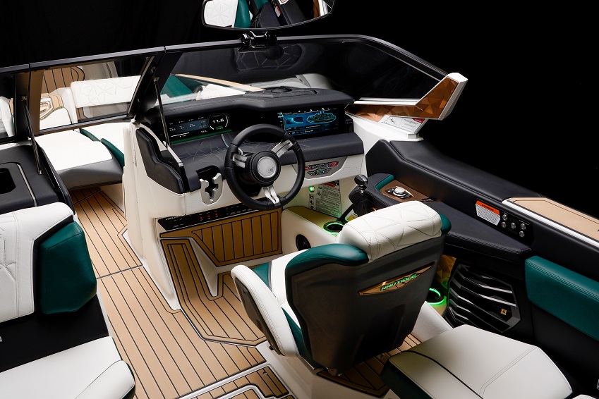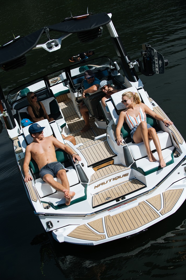 Катер работает безупречно на любой скорости и в любом виде водного спорта, с помощью конфигурируемой плиты Nautique NCRS. Также NCRS позволяет настраивать форму и шейп волны, помогает выйти на глиссирование и автоматически оптимизирует ход судна, обеспечивая водителю отличный обзор.