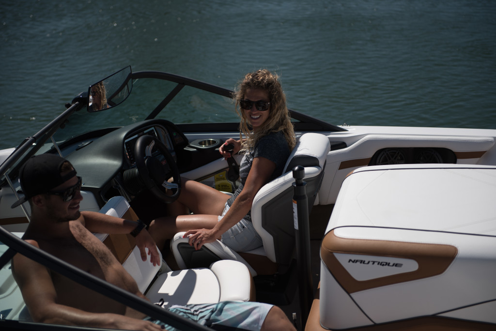 Сиденье пилота очень комфортное и с отличной поддержкой. Эргономика на высоте, Nautique провели исследования среди своих спортсменов, которые много водили эту лодку, чтобы убедится, что ничего не мешает их движениям.