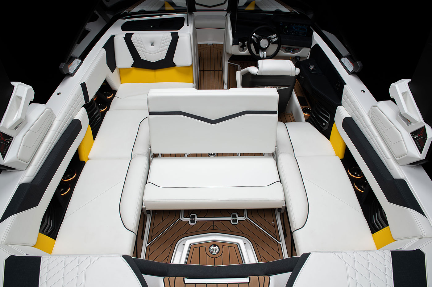 Прямо с конвейера, Super Air Nautique G21 укомплектован стандартно с полной JL Audio M6 Series Elite стерео системой. Она включает в себя новое головное устройство JL Audio MM105s, 6 колонок JL Audio M6 расположенных по всей лодке, 10” дюймовый JL сабвуфер и 8 канальный усилитель JL. Или улучшите стерео систему до нашей M Series Studio Elite пакет, который даст вам два 10” дюймовых сабвуфера, твитеры JL, а также усилитель JL Audio Monoblock. Этот премиальный звуковой пакет Studio Elite также дает возможность контролировать громкость звука в разных зонах лодки, чтоб все в лодке наслаждались отдыхом.